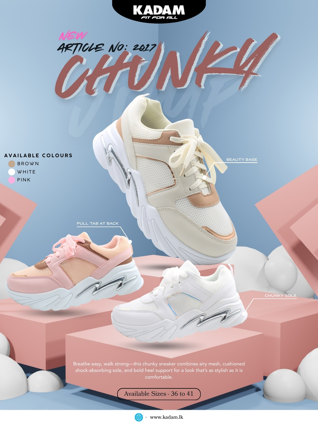 The KADAM JUMP CHUNKY 2017 shoes combine bold style, breathable comfort, and dependable durability. Designed with a chunky sole, modern beauty base, and supportive fit, these shoes are perfect for individuals who want trendy footwear without compromising comfort. Whether you’re going to school, running errands, or enjoying a casual day out, they deliver both fashion and function for everyday wear.